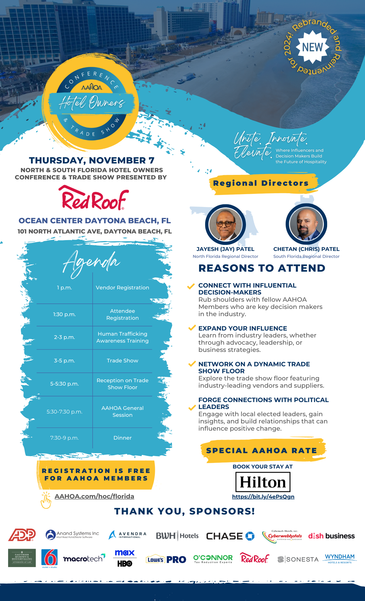 Join us at the 2024 AAHOA Hotel Owners Conference and Trade Show Series, where hospitality professionals converge for unparalleled networking, education, and business opportunities. This dynamic event series showcases the latest industry trends, innovations, and best practices in hospitality. Attendees can expect insightful seminars led by industry experts, interactive workshops, and access to a diverse array of vendors showcasing cutting-edge products and services. Whether you're an established hotelier or an aspiring hospitality entrepreneur, our regional conferences offer a platform to connect, learn, and explore new avenues for success in the ever-evolving hospitality landscape. Don't miss this chance to be part of an enriching experience that fosters growth and excellence within the hospitality community.