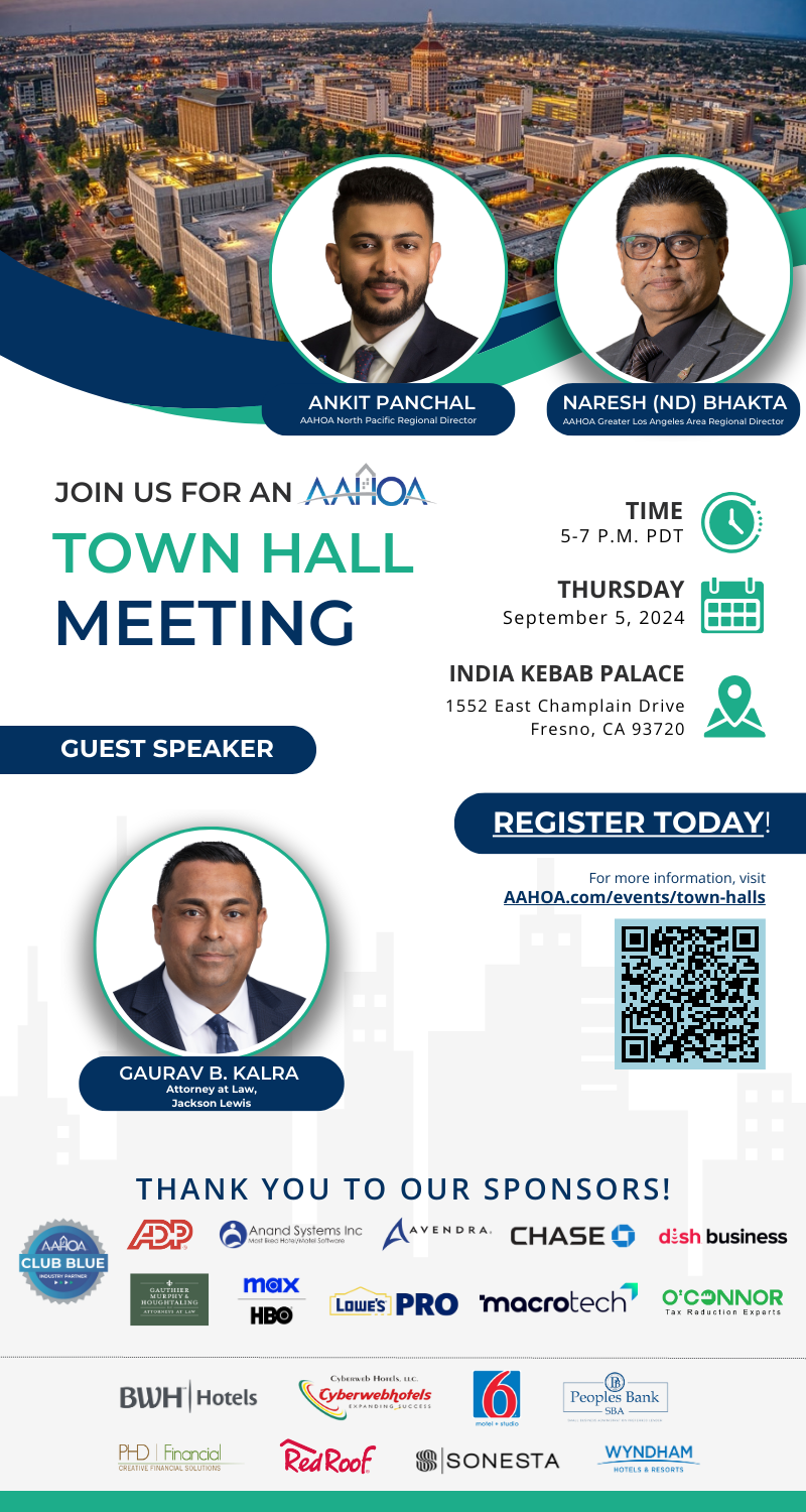 By registering for this event, you consent to receive autodialed, pre-recorded calls, or texts from or on behalf of AAHOA regarding AAHOA events and initiatives at the telephone number provided above. Message or data rates may apply. You consent to share your first name, last name, company name, title, mailing address, and business phone number with AAHOA vendors at this event.
