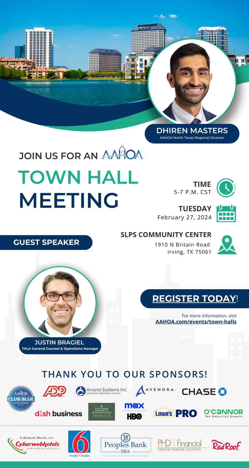 By registering for this event, you consent to receive autodialed, pre-recorded calls, or texts from or on behalf of AAHOA regarding AAHOA events and initiatives at the telephone number provided above. Message or data rates may apply. You consent to share your first name, last name, company name, title, mailing address, and business phone number with AAHOA vendors at this event.