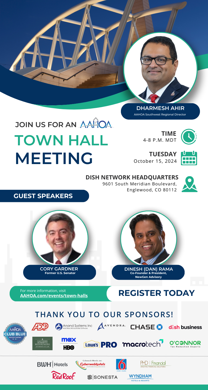 By registering for this event, you consent to receive autodialed, pre-recorded calls, or texts from or on behalf of AAHOA regarding AAHOA events and initiatives at the telephone number provided above. Message or data rates may apply. You consent to share your first name, last name, company name, title, mailing address, and business phone number with AAHOA vendors at this event.