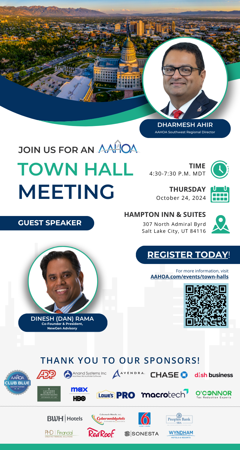 By registering for this event, you consent to receive autodialed, pre-recorded calls, or texts from or on behalf of AAHOA regarding AAHOA events and initiatives at the telephone number provided above. Message or data rates may apply. You consent to share your first name, last name, company name, title, mailing address, and business phone number with AAHOA vendors at this event.