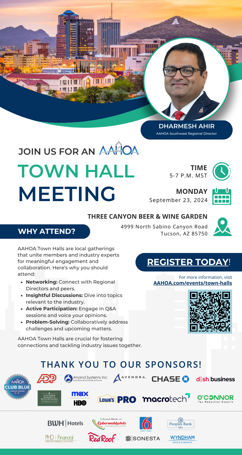 By registering for this event, you consent to receive autodialed, pre-recorded calls, or texts from or on behalf of AAHOA regarding AAHOA events and initiatives at the telephone number provided above. Message or data rates may apply. You consent to share your first name, last name, company name, title, mailing address, and business phone number with AAHOA vendors at this event.